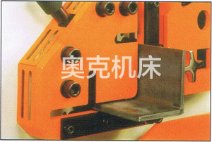 | 沖孔位置 沖孔模板上有大的可視窗口,旋開式設(shè)計(jì)更容易操作。有標(biāo)尺和止支器的兩塊大的測(cè)量板是標(biāo)準(zhǔn)設(shè)施?梢钥焖俑淖兊倪B接螺母和連接套筒可以快速地復(fù)位和改變。 | 開槽位置 特別的設(shè)計(jì)可以非常卓越地切割角材和條鋼。電子聯(lián)鎖安全裝置保證了更大的操作器安全。通風(fēng)裝置保證了更大的操作器可視度。三個(gè)測(cè)量止支器保證了精確的定位。 |